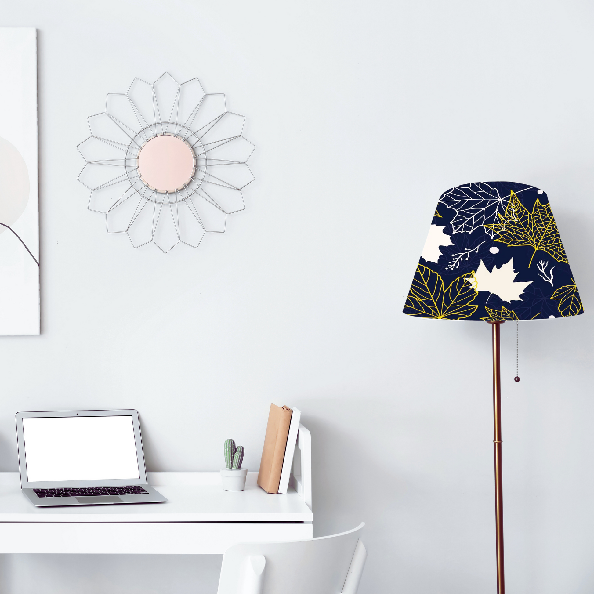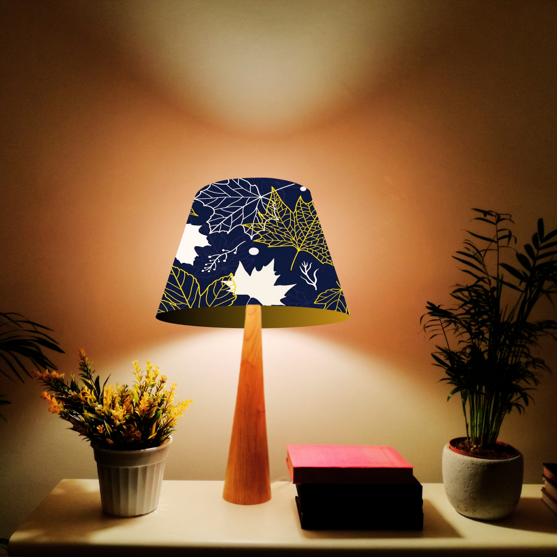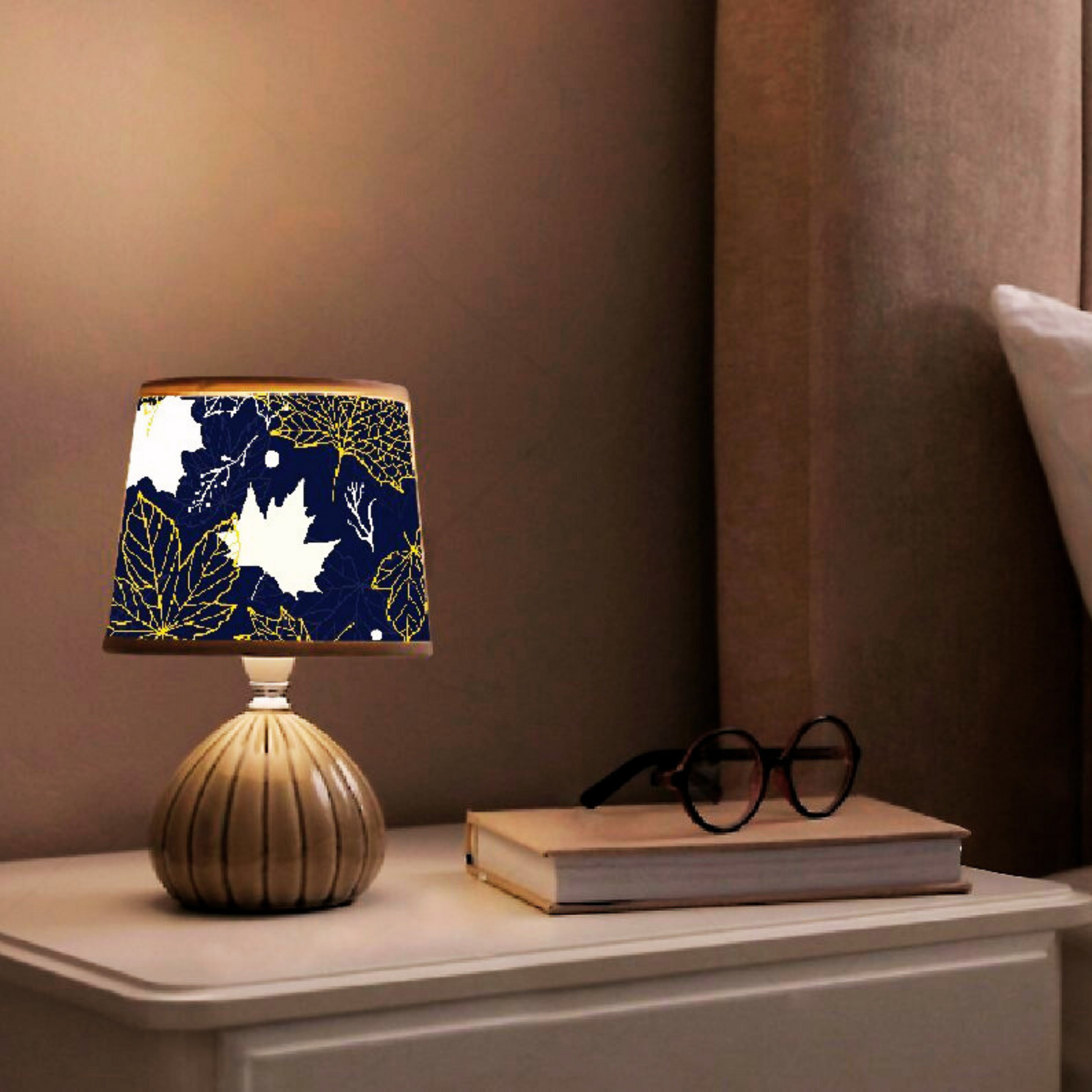 CD160;H 8" x W 12" ; Bell Lamp Shade; Handmade Lamp Shades, Lamp shade for table lamp; Vintage Lamp Shade; Fabric lamp Shade. " maple leaves" printing