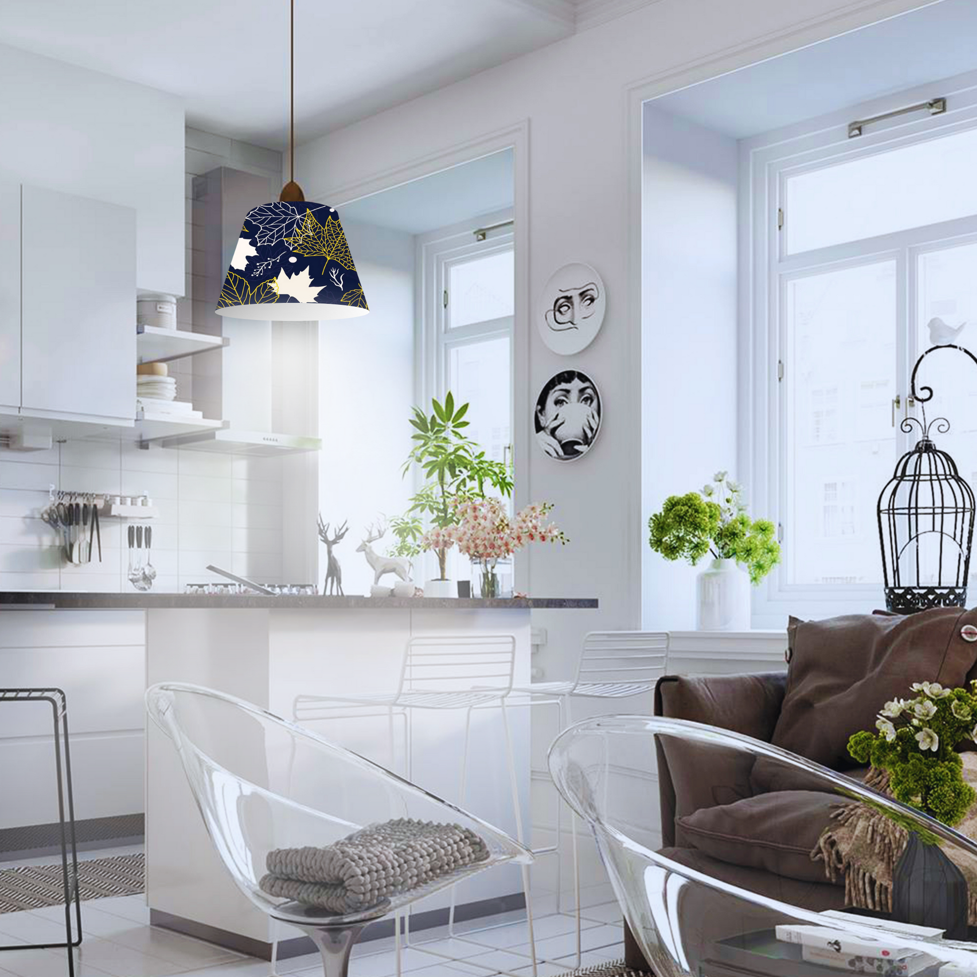 In addition lampshades are available in a variety of patterns and styles to meet the characteristics of your different decorations..It can be placed in living room, bedroom, dining room, island, balcony, study, children's room, corridor, office, library, cafe, etc. Also perfect for narrow spaces.Plug in pendant lighting with cord includes installation instructions, and all accessories needed for installation.H