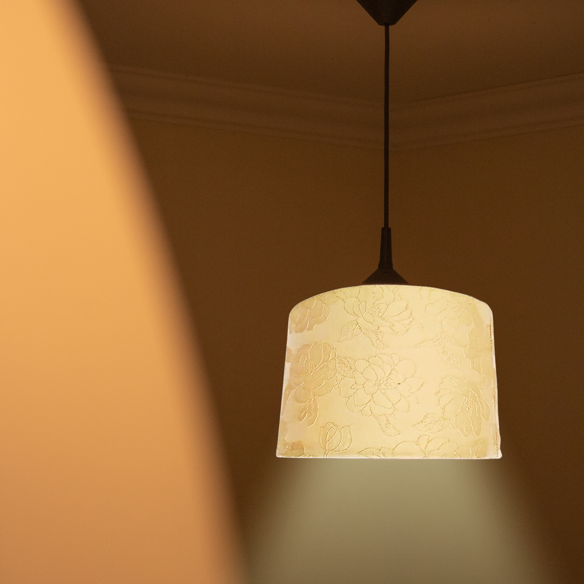 The Lampshade are made by Thin silk fabric printed flower pattern . which is a fabric produced as recycled, organic materials , trending now aday