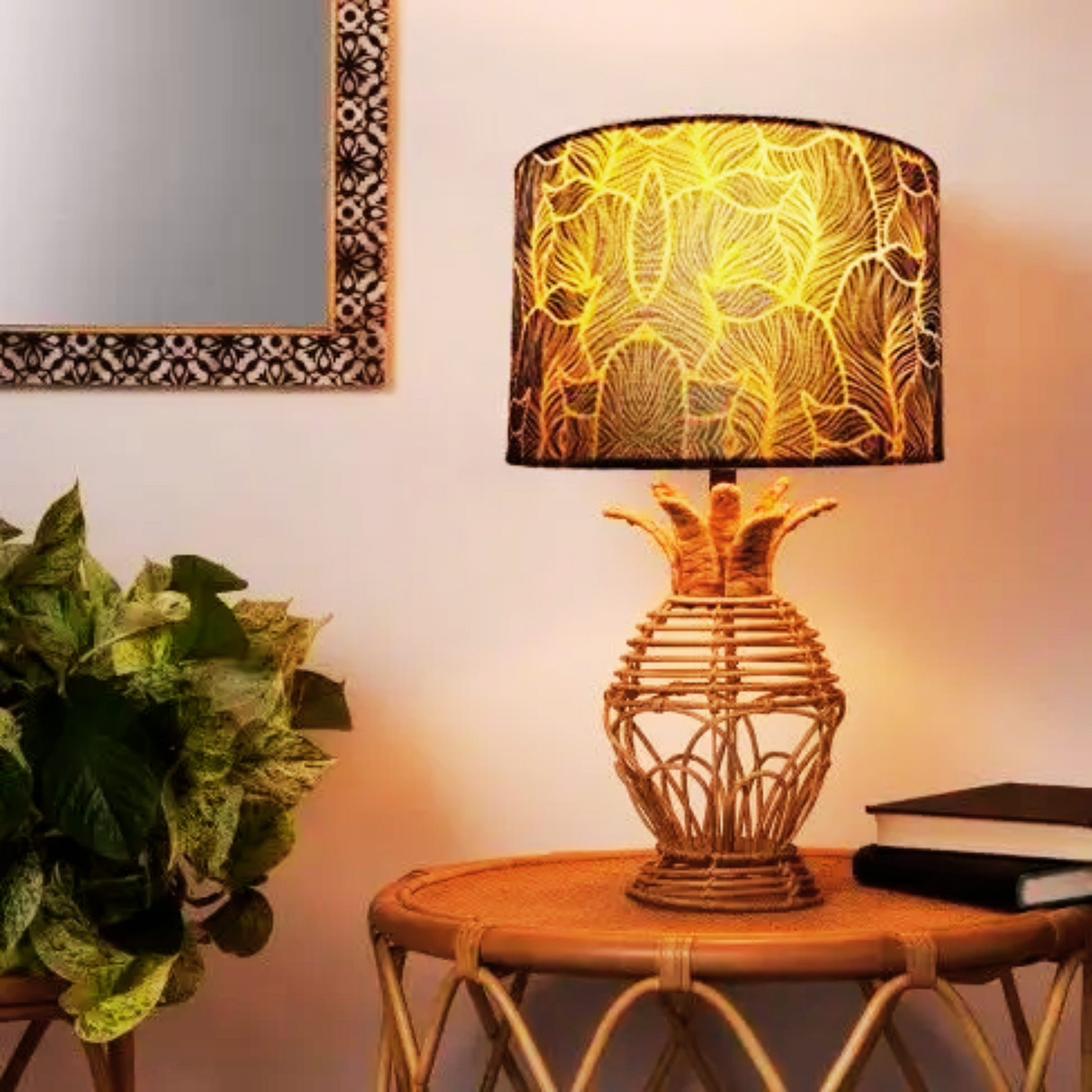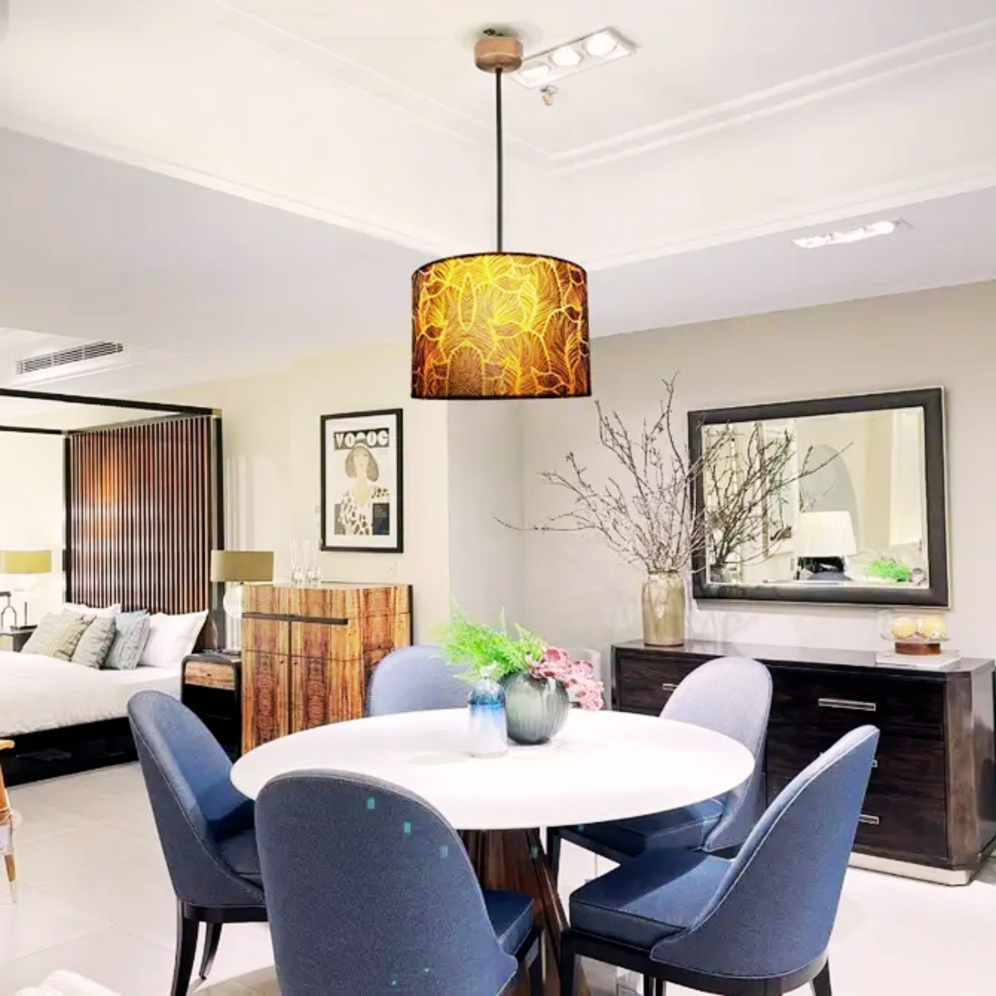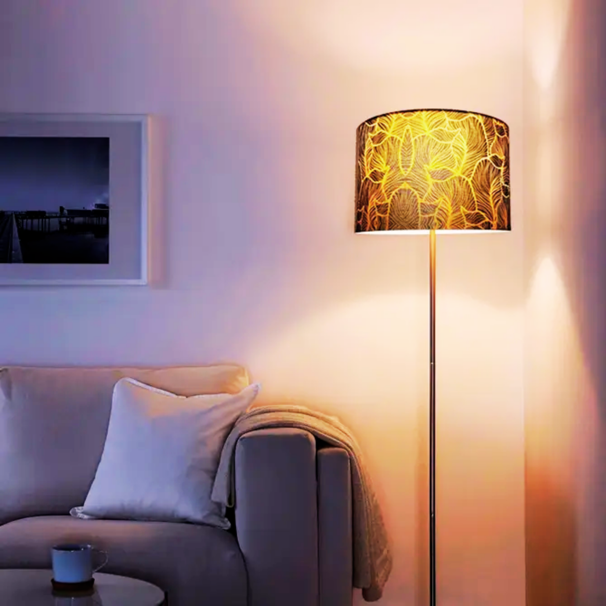 - Design: Exclusive drum-shaped lampshade design by H-H, 100% hand made product. The lampshade is designed with an abstract image of golden leaves, bringing high artistry and warmth to your space.