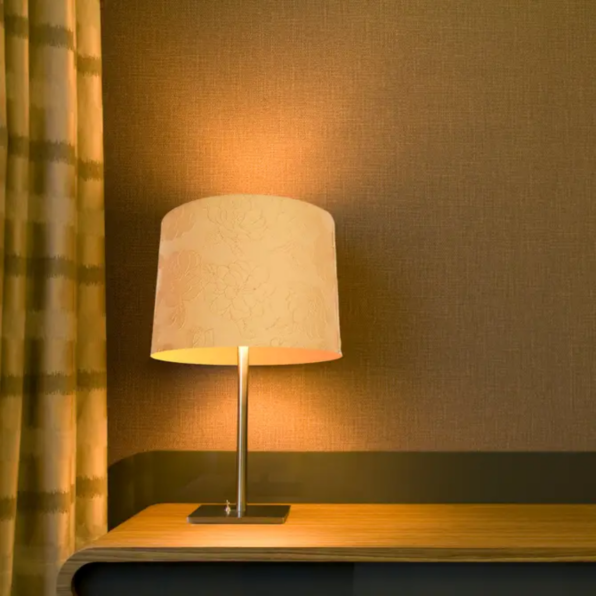 - Design: Exclusive drum-shaped lampshade design by H-H, 100% hand made product. The lampshade is designed with embossed patterns on the fabric, depicting vivid flowers, bringing high artistry and warmth to your space.