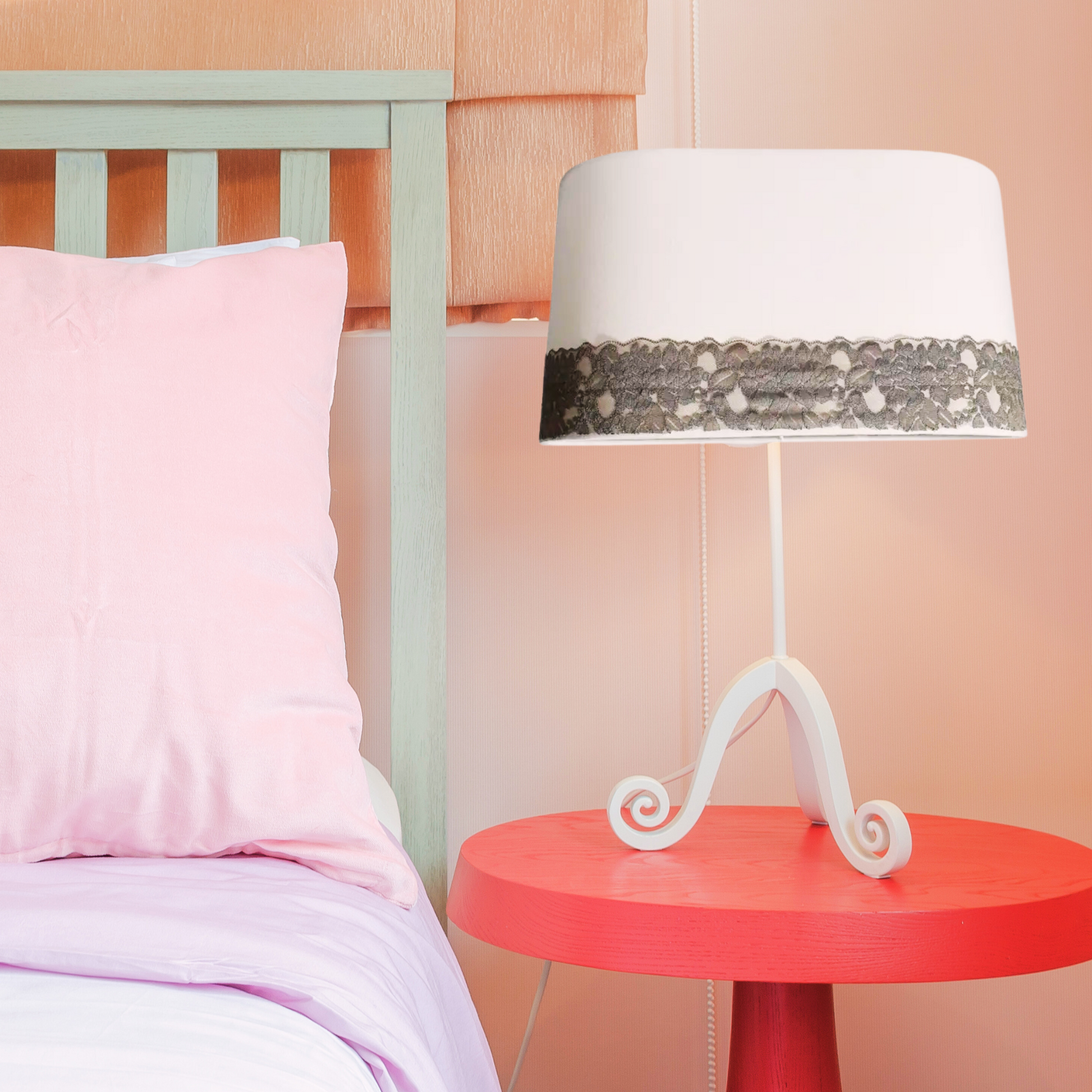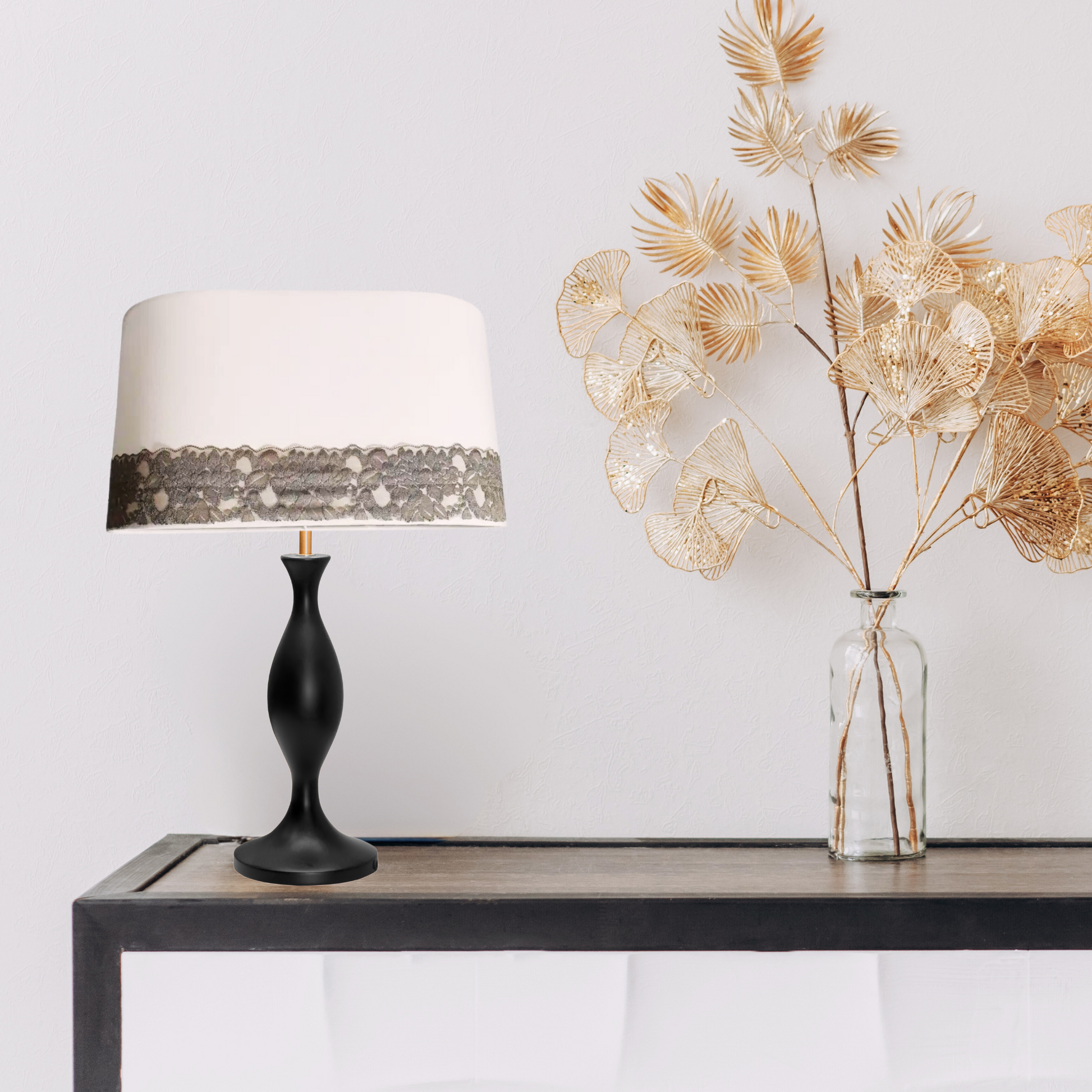 The lampshade has a very luxurious design and pattern embossed on satin fabric, suitable for living room and bedroom spaces.