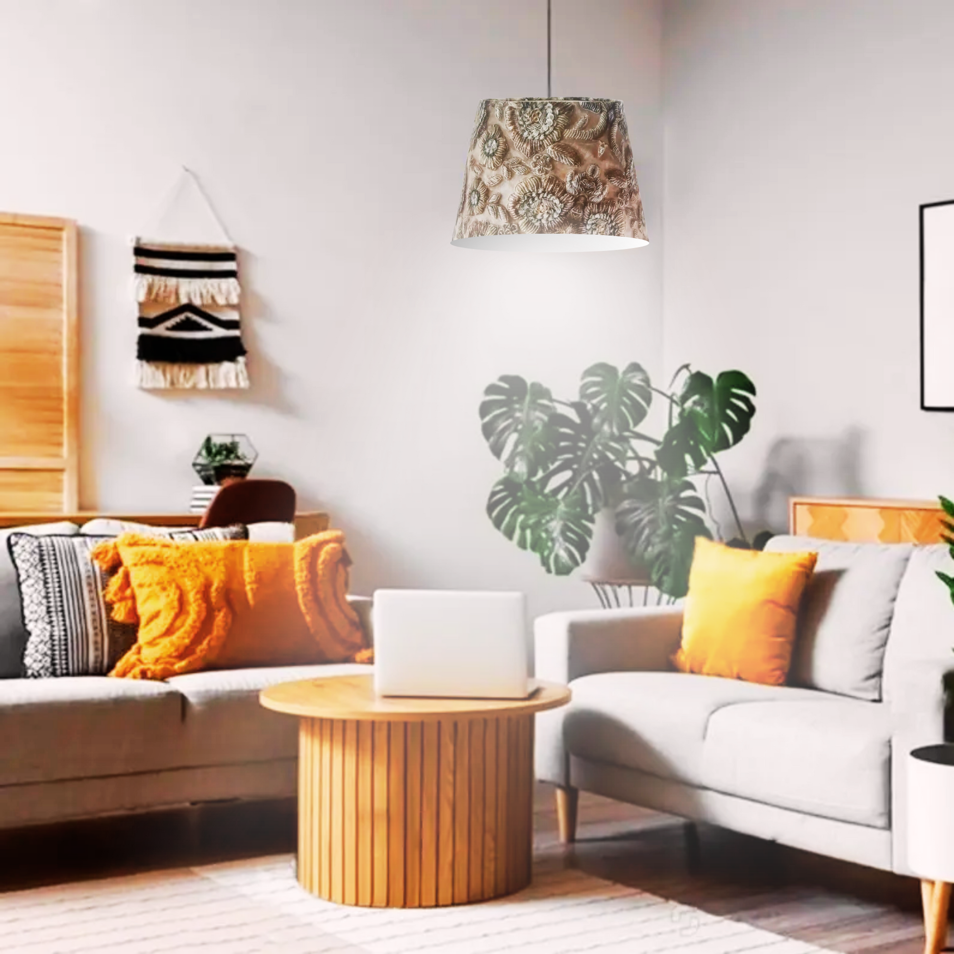 - Design: Exclusive lampshade design by H-H, 100% hand made product. Designed with a unique classic style with vivid, embossed patterns. The material helps diffuse light well, suitable for all your living spaces.