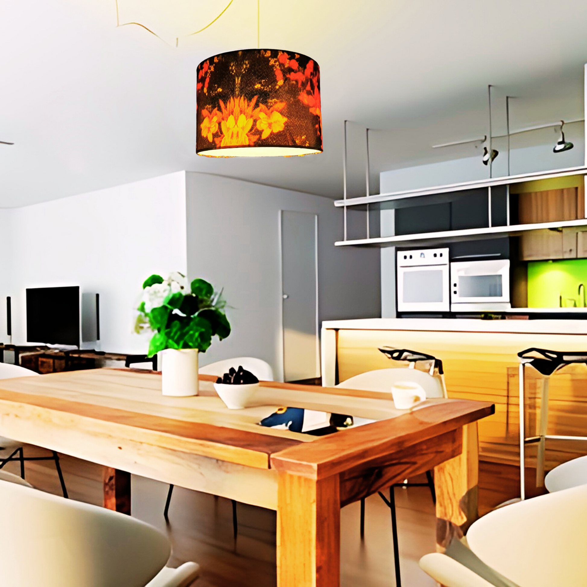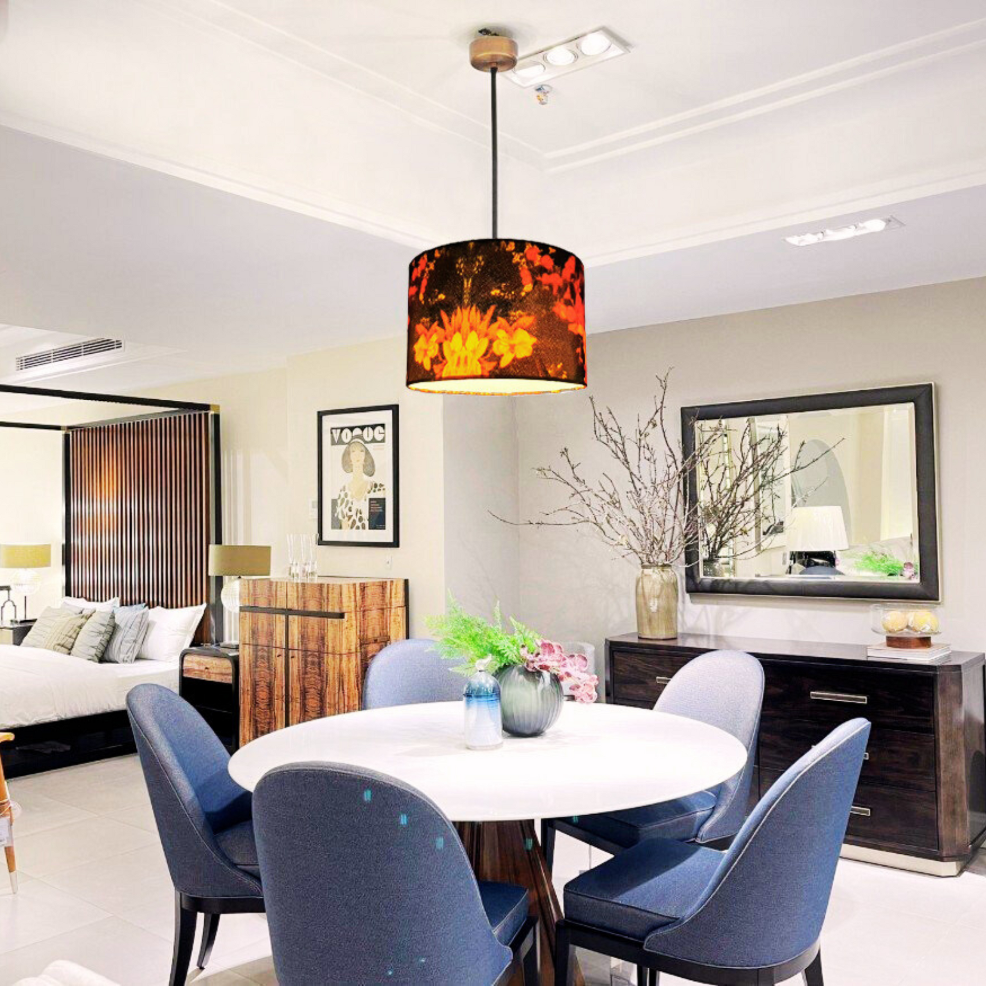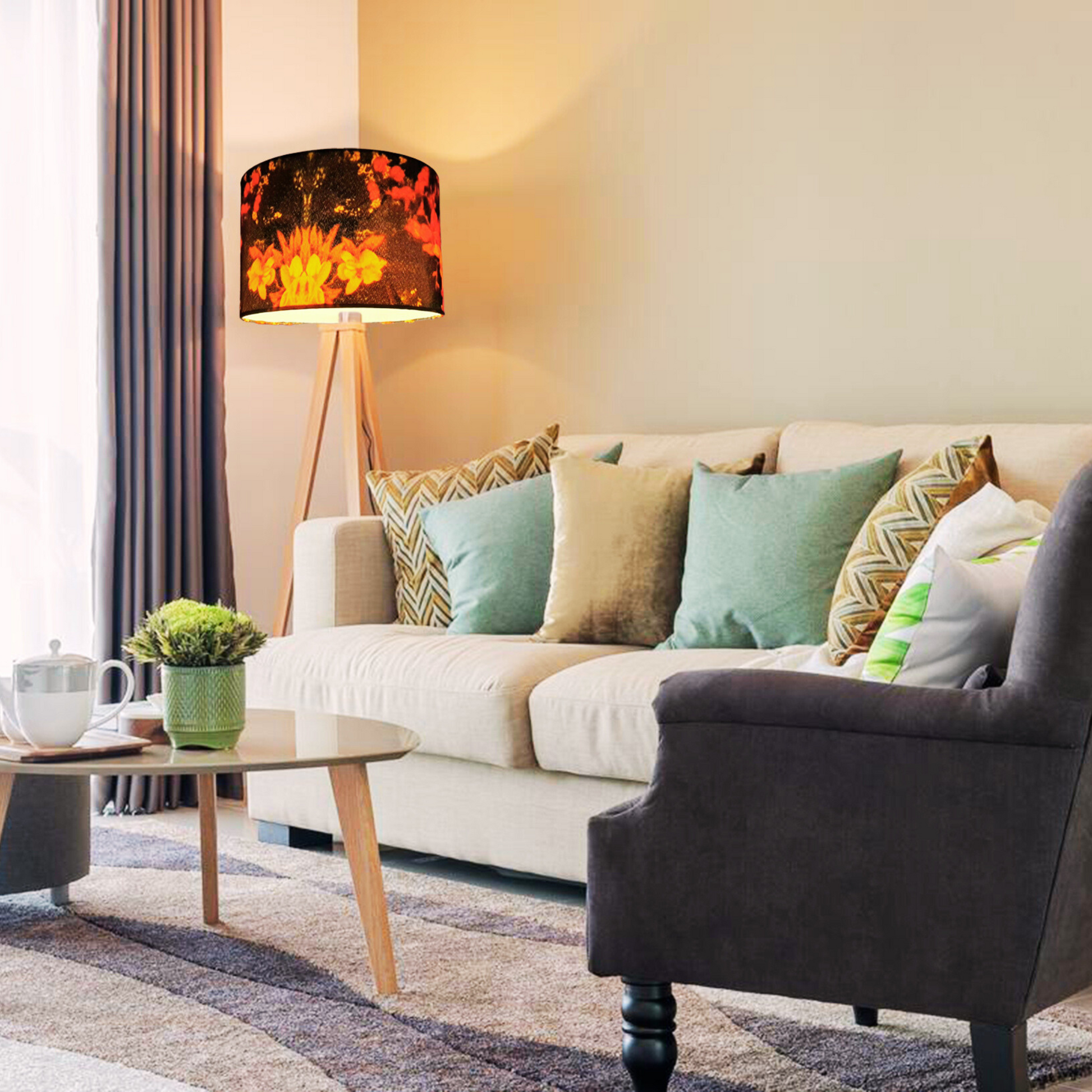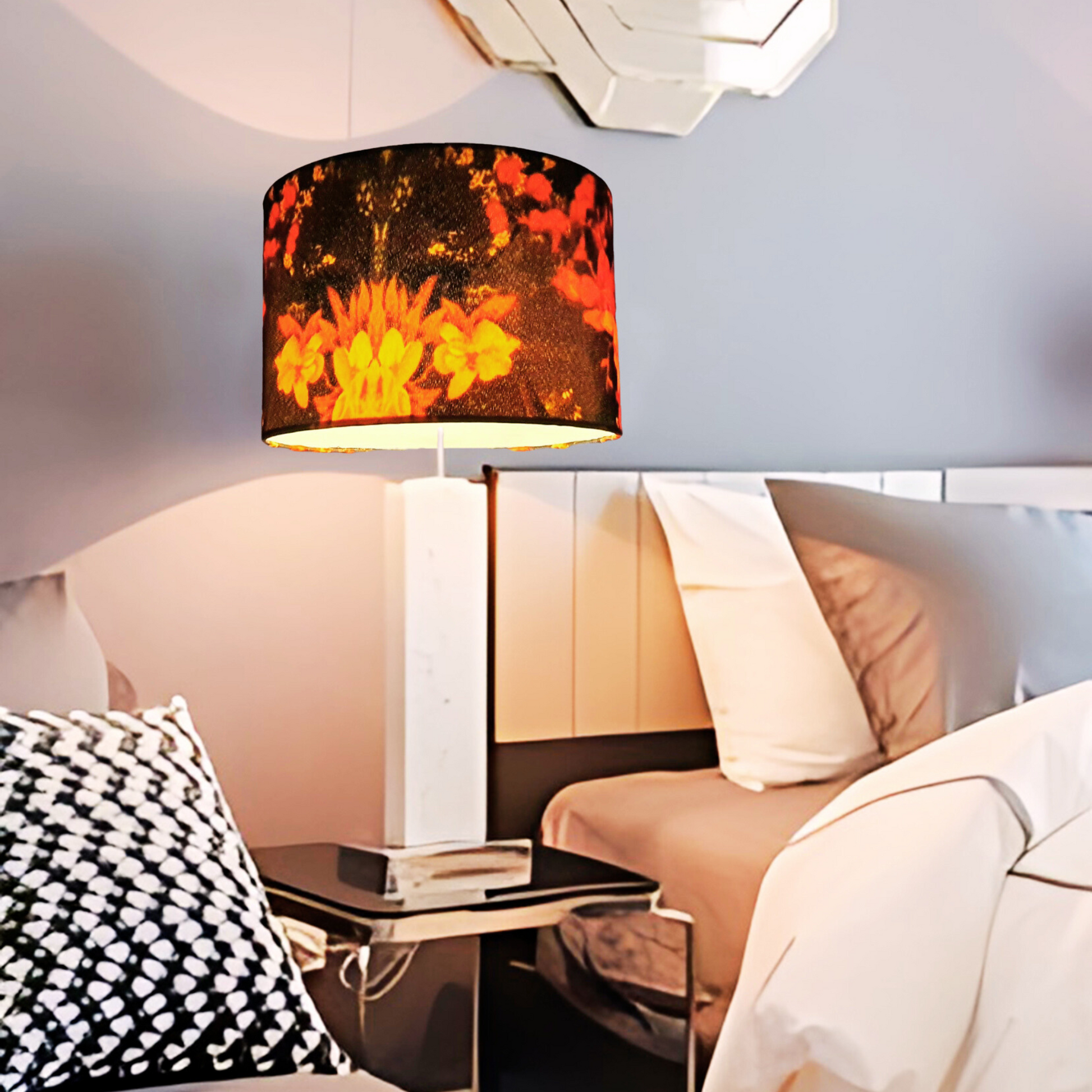 - Design: Exclusive lampshade design by H-H, 100% hand made product. The lampshade is designed with a print depicting the image of colorful flowers competing to bloom. A highly artistic and warm image for your space. Fabric material helps diffuse light well and makes your space more lively and magical.