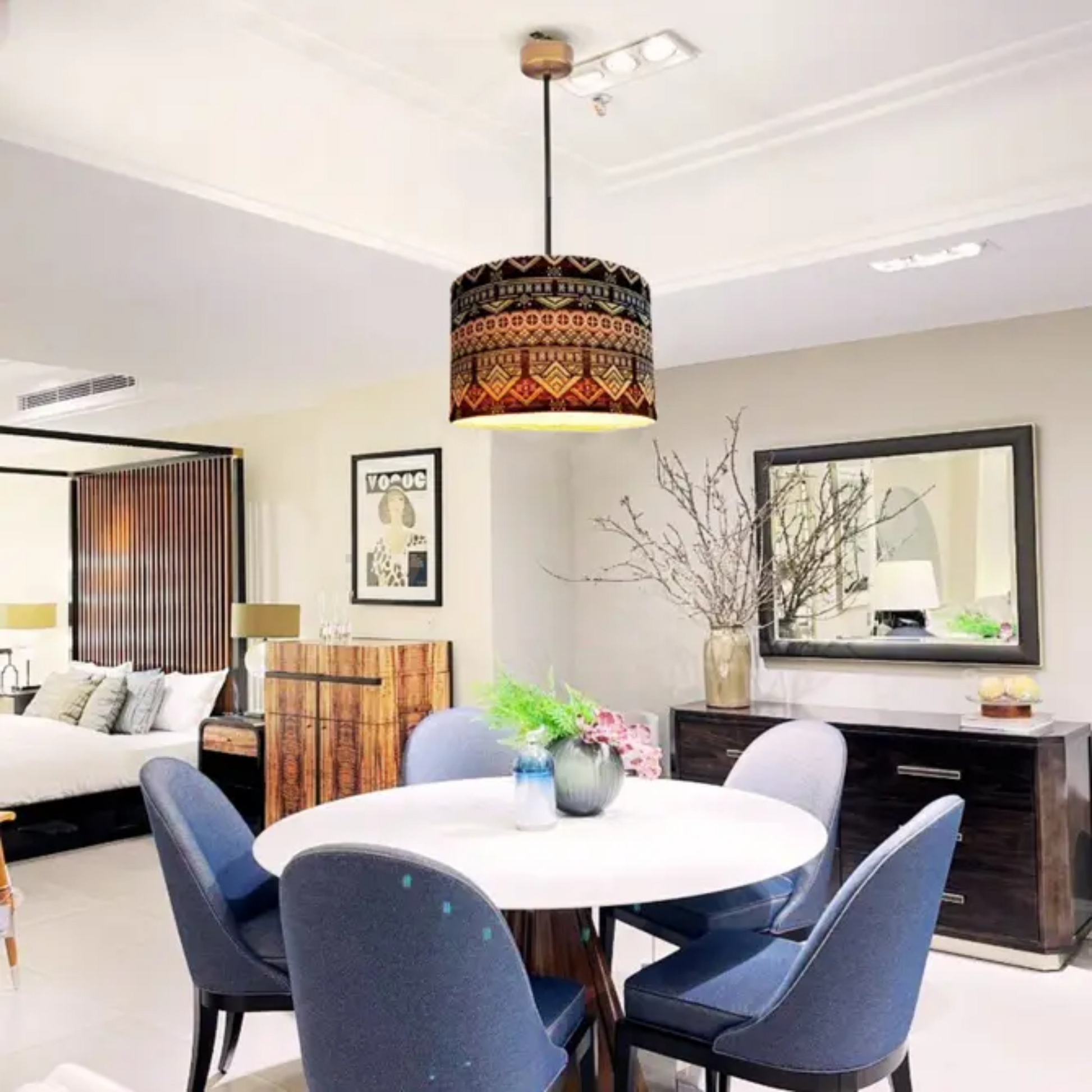 - Design: The lampshade is 100% handmade. Brocade fabric is woven mainly from raw cotton and flax fibers combined with natural dyes. Each ethnic minority has its own way of weaving brocade with different patterns. Each type of pattern is associated with the living environment, thereby expressing the unique cultural features of the region.