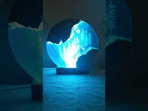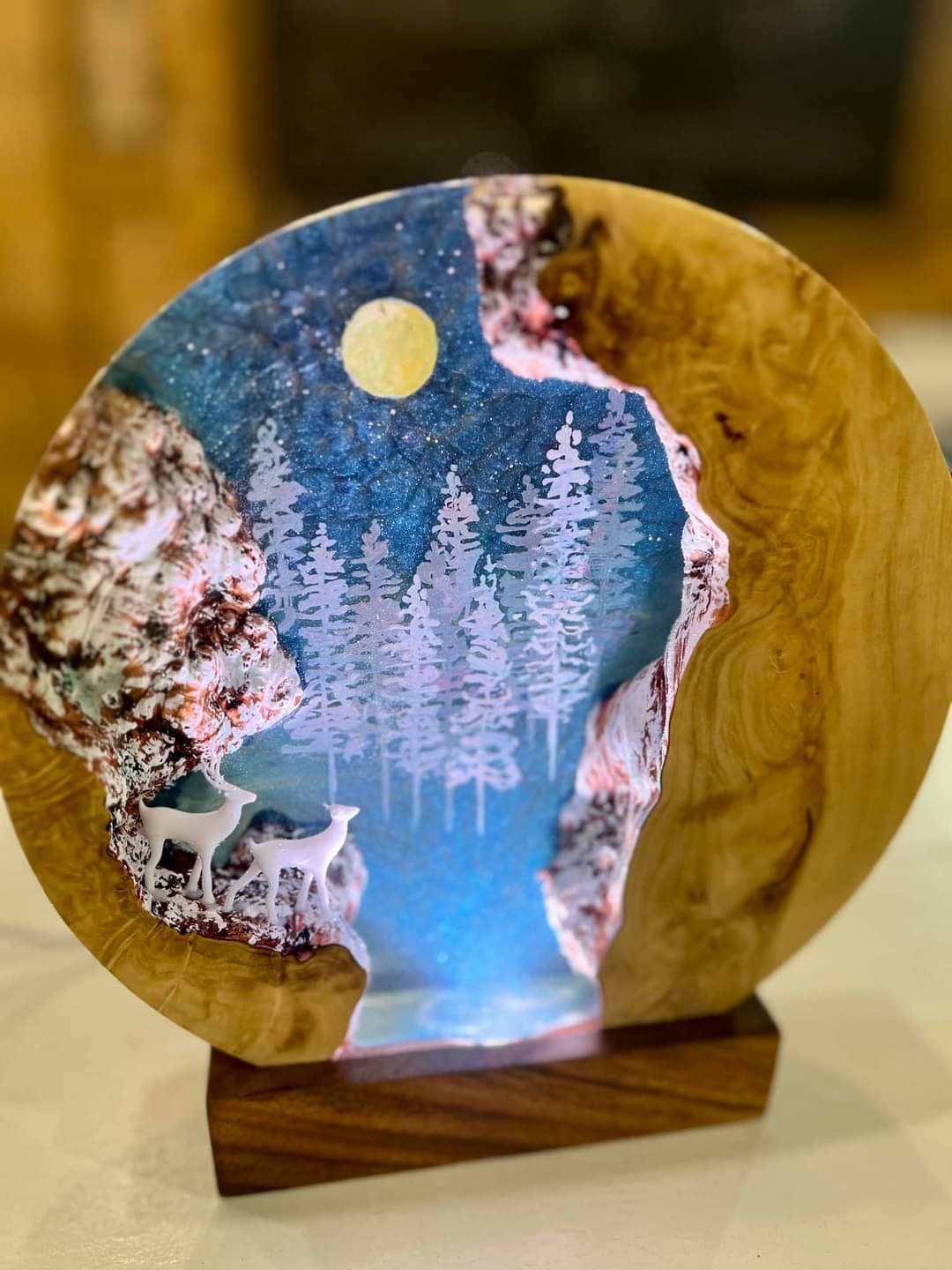 Nature wood with resin. forest in winter night , 15 colours, remote control. UPC cable.