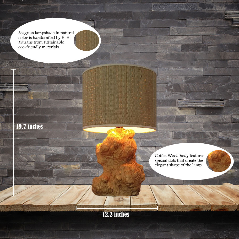This table lamp has a body made of coffee wood and a lampshade made of papyrus. The unique combination of materials used in this lamp makes it aesthetically pleasing and warm, bringing a sense of nature into your home.