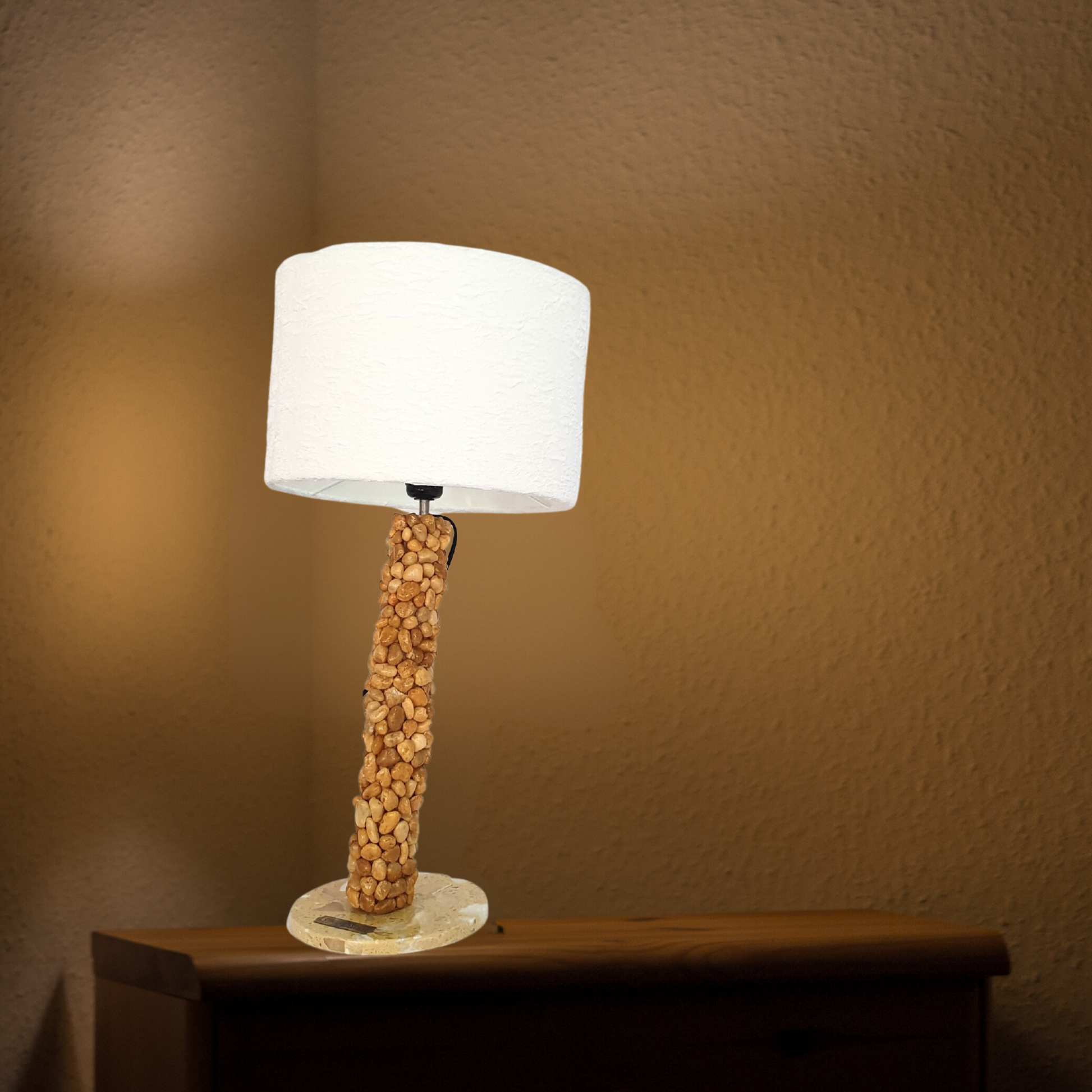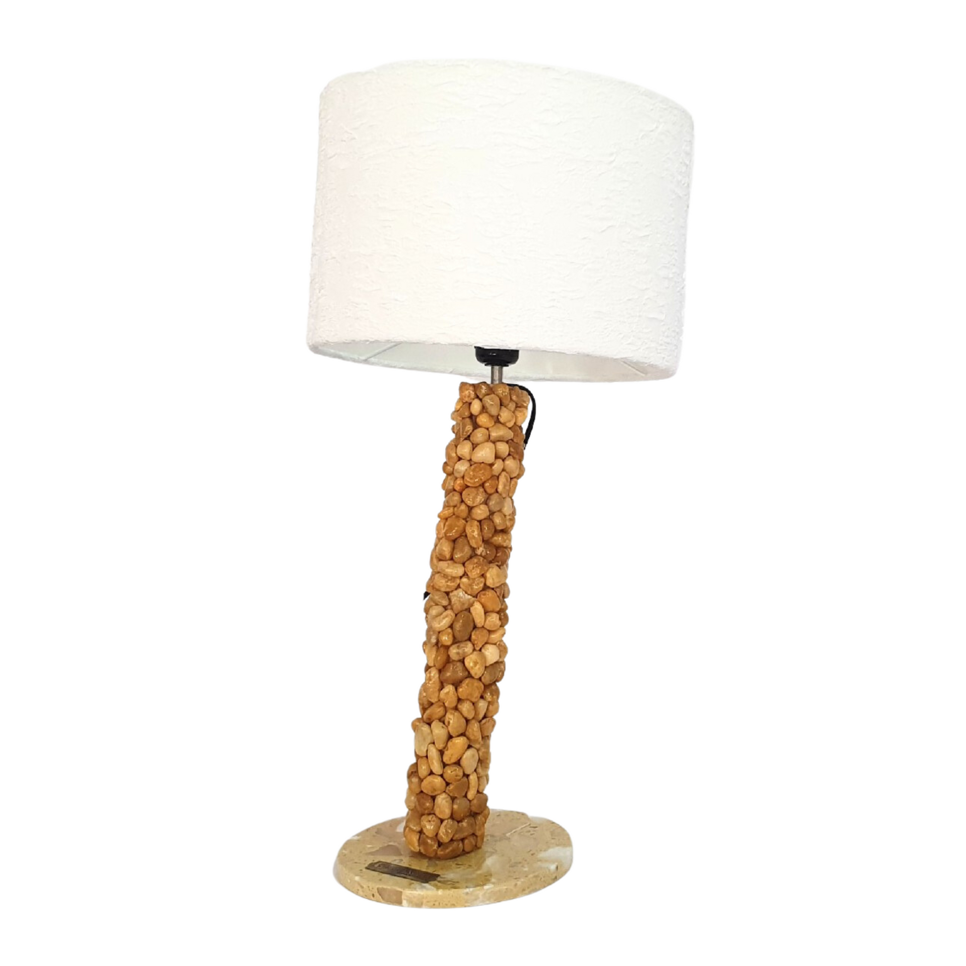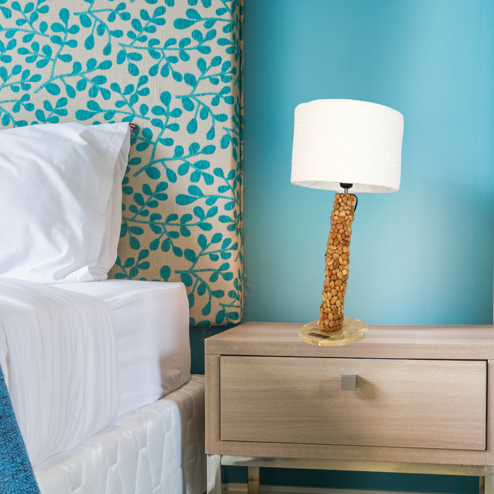 🍀 What's included: 01 wood holder equipped with 01 light bulbs.This table lamp has a aquatic wood body and is studded with pebbles. The lampshade is made from textured fabric and made by craftsmen. Its warm light and unique shape create a cozy and friendly atmosphere in any room, making it perfect for reading, studying or simply relaxing.