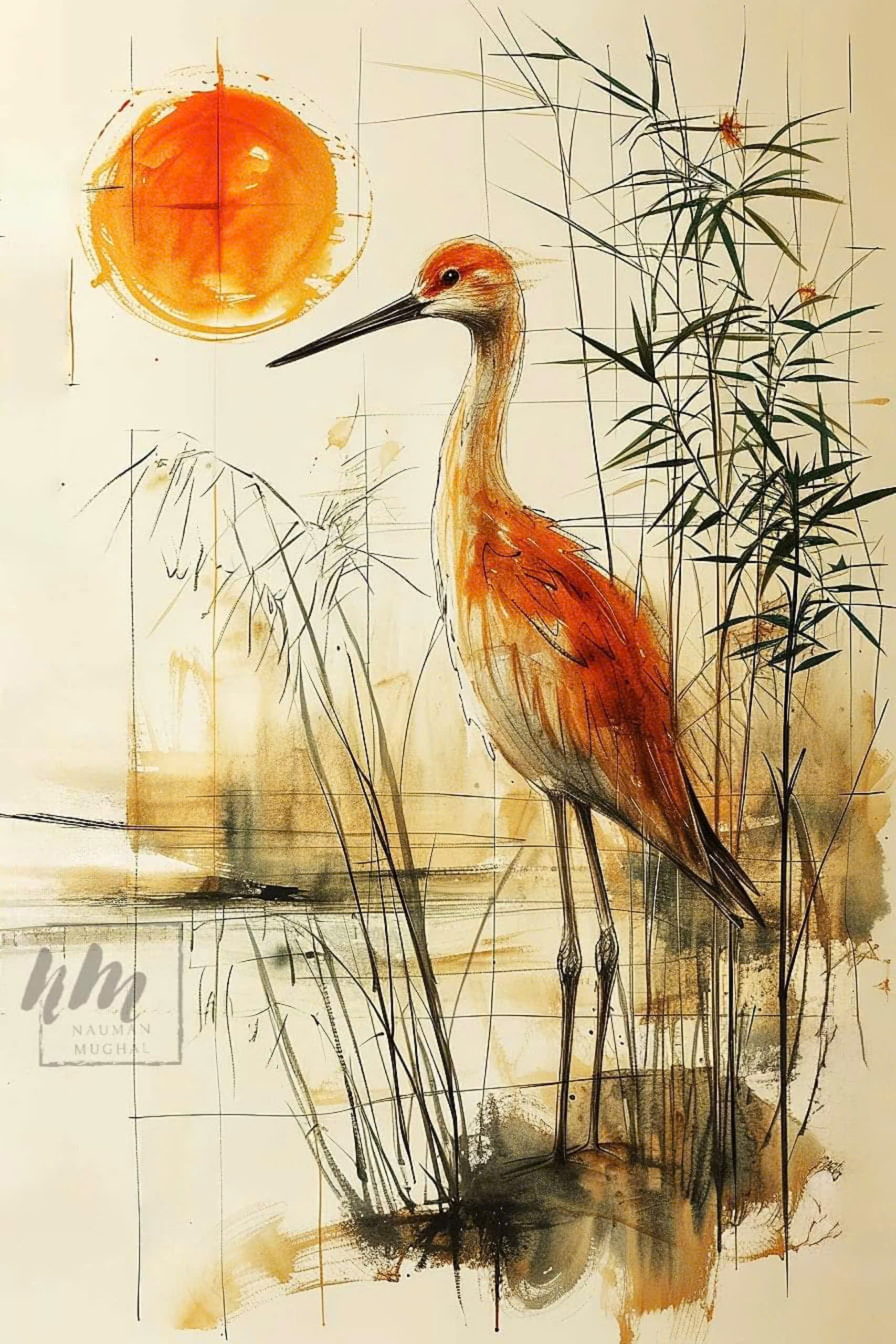Material: watercolour; Back ground : canvas fabric; Frame : nature wood ( driftwood or coffee wood).